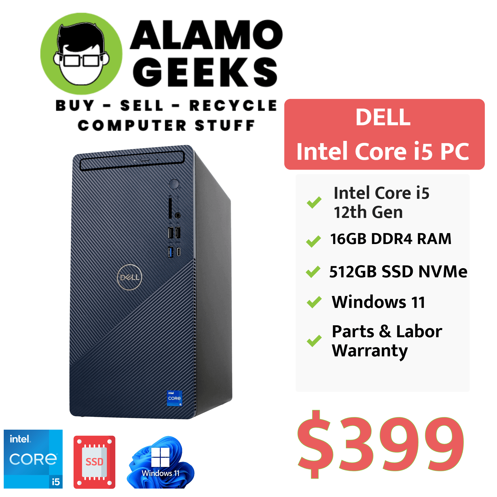 The Alamo Geeks LLC Advantage: By choosing an Alamo Geeks LLC certified refurbished system, you secure professional-grade performance at a stable value, avoiding the heavy retail inflation currently affecting new computer inventory.
